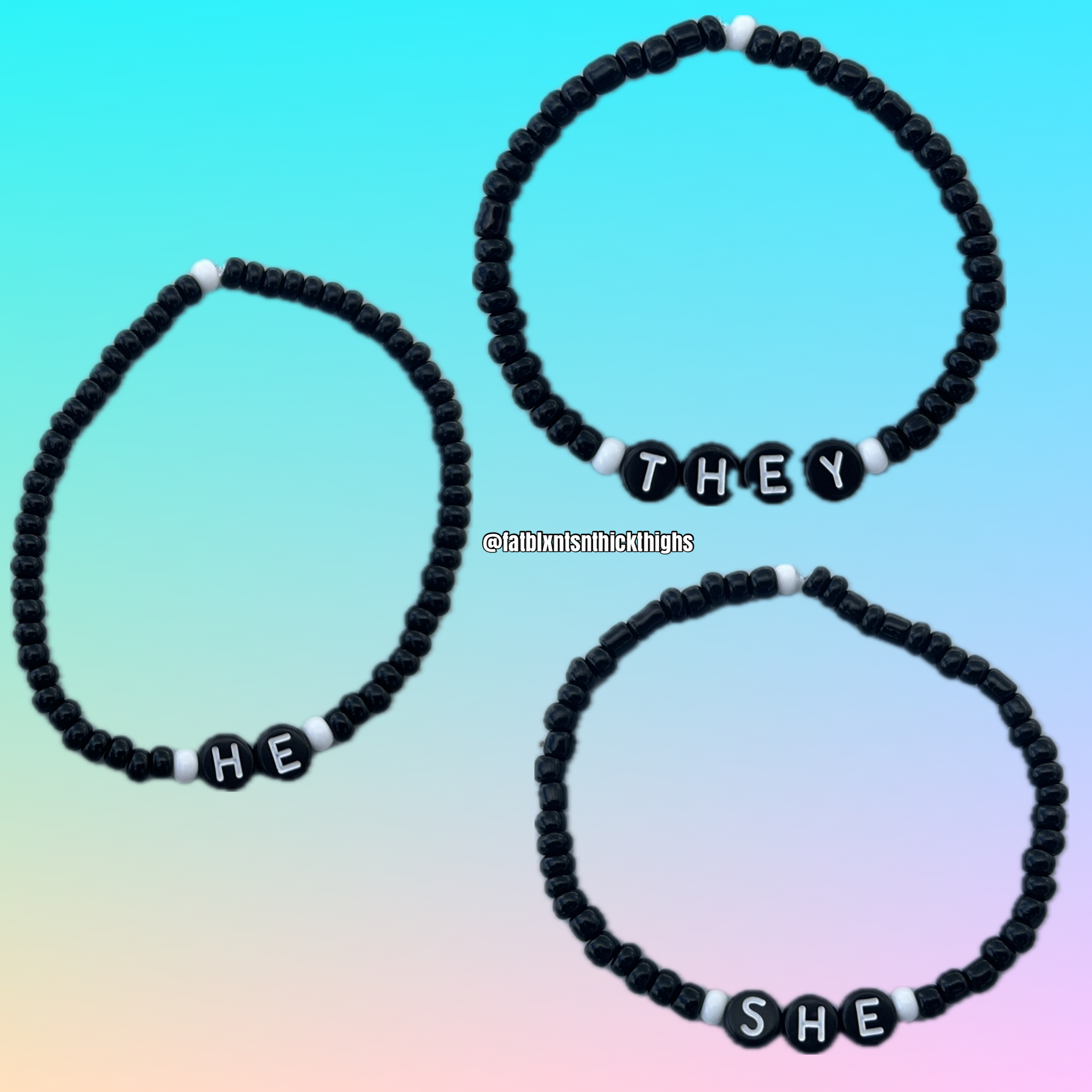 Monochrome Pronoun Seed Bead Bracelet